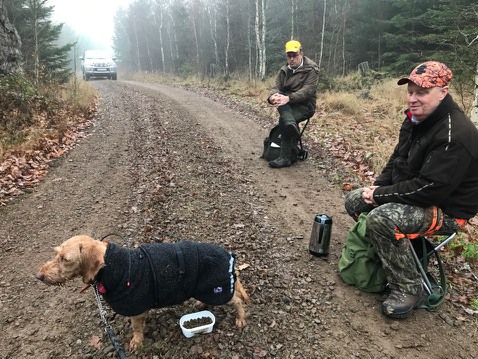 08:29 Markvisare och hundägare lyssnar på drevet.