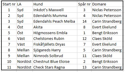 | LA | Ras | Hund | SE-Nummer | Ägare |